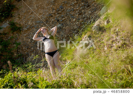 Young sexy blonde woman in bikini