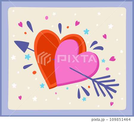 Two hearts held together by an arrow. Happy Valentine's Day. Vector illustration.