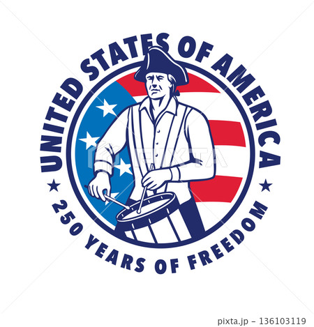 United States of America 250 Years of Freedom American Patriot Drummer Logo Retro