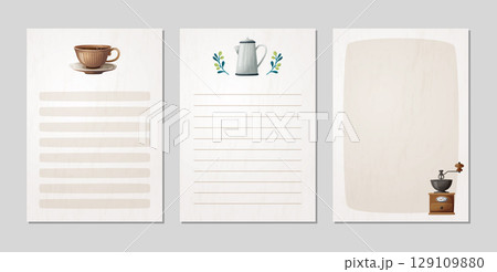 一組咖啡下午茶手繪風格可愛插畫筆記本內頁設計圖框向量素材圖片