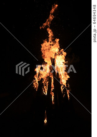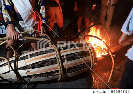 京都左京区鞍馬の火祭りでみられる美しい松明の火と火祭りの賑わい