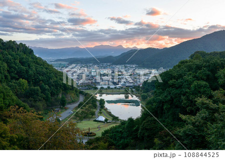 舞鶴山もみじ園から望む愛宕沼と天童公園と天童温泉