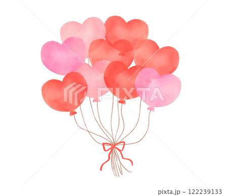 ハートの風船の束 ピンク 水彩 イラスト素材