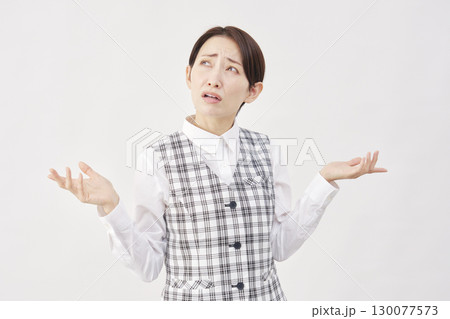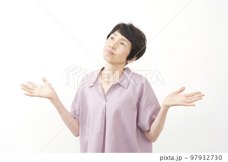 女性 ミドルエイジ ギブアップのジェスチャー 白背景 カメラ目線