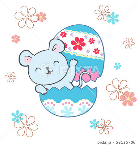 蛋殼破裂,一隻小老鼠探出身體來打招呼,復活節彩蛋