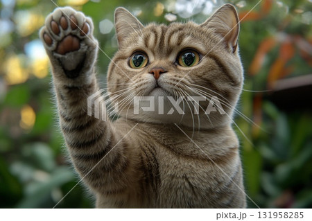 Curious Cat Raises Paw in Surprise Among Vibrant Foliage in Sunny Garden Generative AI