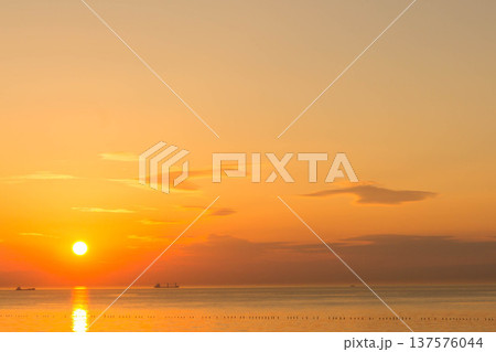 日本の原風景 夕陽に照らされる穏やかな伊勢湾