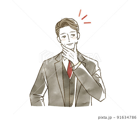 若い男性 上半身 ベクターイラスト / 話を聞く・納得する