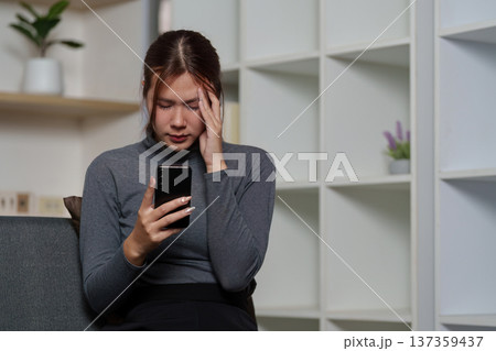 Digital Stress. A young woman feeling overwhelmed while using her smartphone.