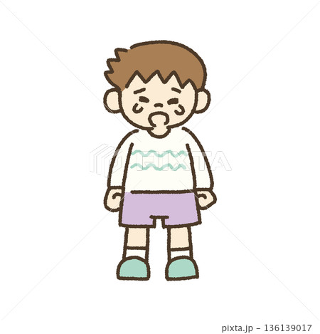 泣きながら訴える男の子のイラスト 手描き