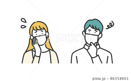マスクを着用した困った表情の男女のイメージイラスト素材