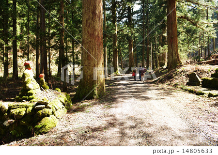 慈光寺参道に並ぶ三十三観音の石仏と杉並木