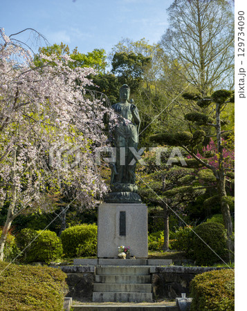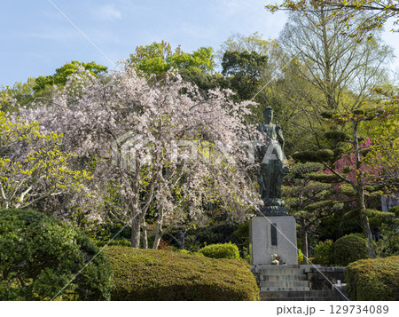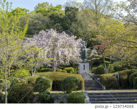 五月山公園の慈母観音像と枝垂れ桜