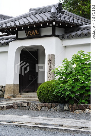 緑に包まれた天龍寺の慈濟院の龍宮門