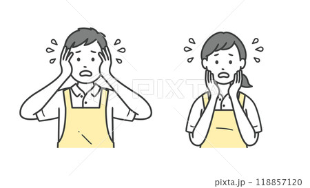 冷や汗をかいて大慌てする女性・混乱・パニック・大忙し