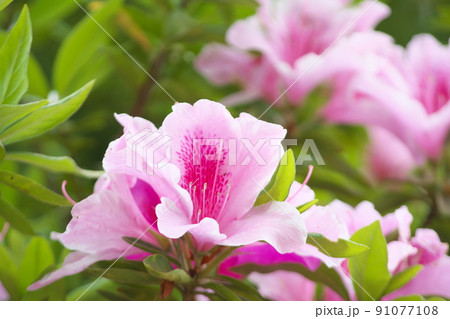 ヒラドツツジの桃色花【緑背景】