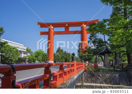 京都 平安神宮の大鳥居と慶流橋(けいりゅうばし).