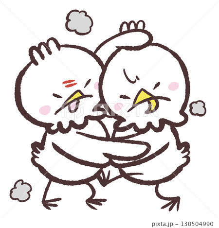 ケンカする白い鳥のイラスト