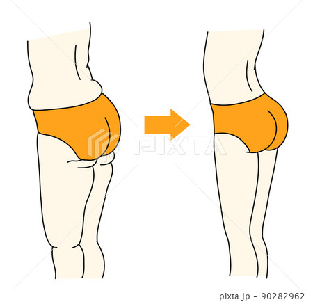 お腹周り、腰回り、お尻回り、足の肉をシェイプしたビフォーアフターのイラスト