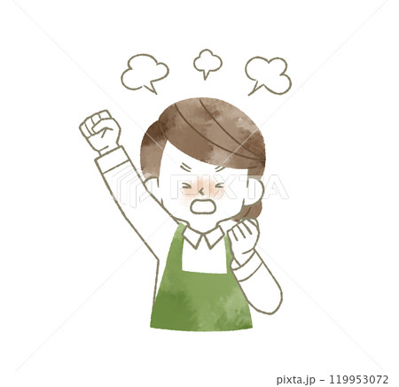 怒っているエプロンを着用した女性-水彩