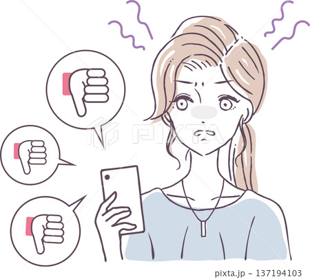 アンチの人 低評価を押す女性 ベクターイラスト素材