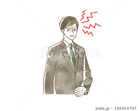 睨んでいるスーツ姿の男性