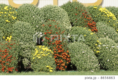 千輪咲きに仕立てられた小菊は、半球状に花が隙間なくかつ規則正しく並べ咲かせるもので美しい。