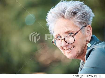 Nature, portrait and senior business woman in the office garden while on her work lunch break. Happy, smile and elderly professional corporate manager standing in a park in Canada for fresh air.