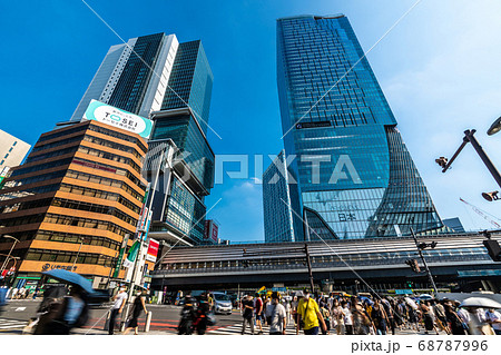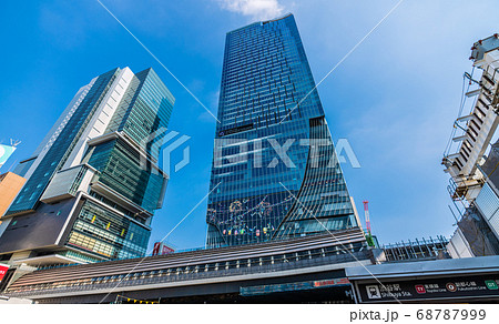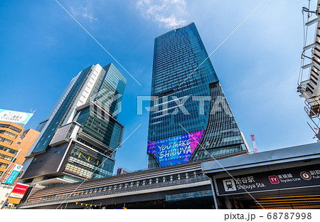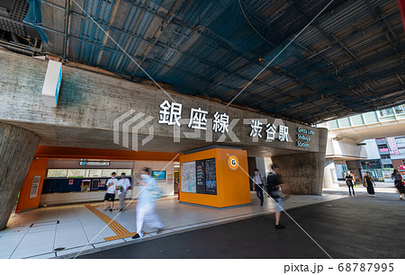 日本の東京都市景観 コロナ禍の中で迎えた戦後75年「終戦の日」の8月15日=東京・銀座線渋谷駅
