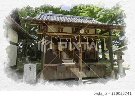 水彩画風 素盞嗚神社 神楽殿 広島県福山市