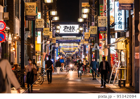 日本の東京都市景観 「東京アラート」発動中で、マスク姿が目立つ戸越銀座商店街