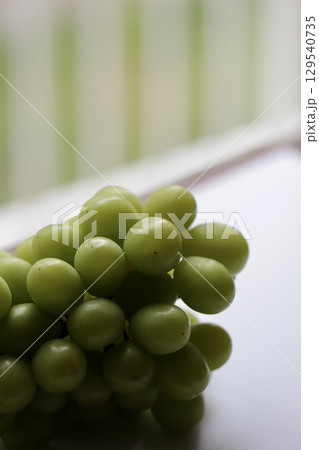 房葡萄の上に置いたハーフカットの広島県産シャインマスカット