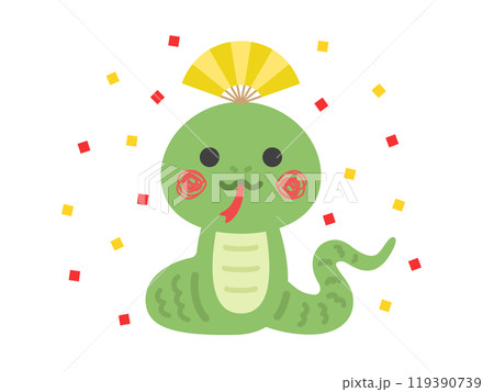 頭に扇子をのせた、蛇のキャラクターのイラスト