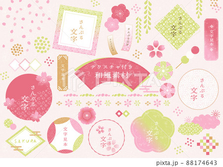 和風のデザイン素材セット/フレーム、装飾、見出し、年賀素材