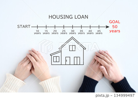 50年の住宅ローンをイメージしたイラストを黒板に描く人物の手