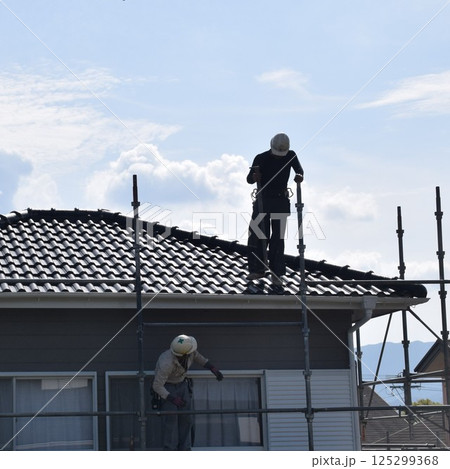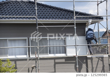 ペンキ塗布 足場の解体撤去作業 素材 背景