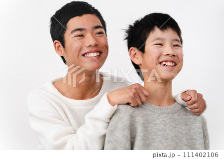 私服姿の小学生と中学生の男性 ライフスタイルイメージ