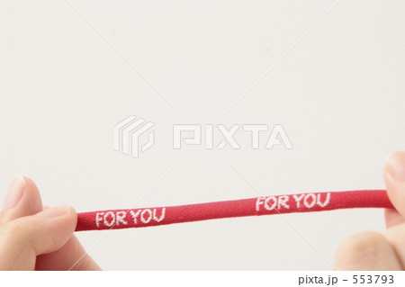 FOR YOUロゴ入り赤いリボンを持つ手