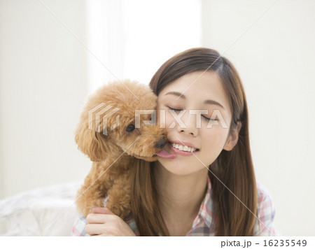 女性とトイプードル