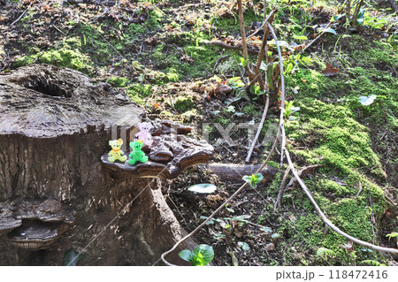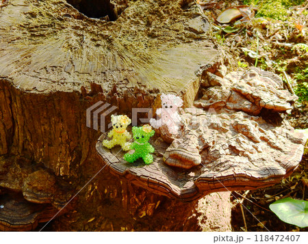 サルノコシカケに腰掛ける手作りビーズテディベア