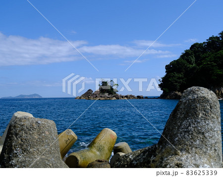 鞆の浦海岸 手倉湾の沖合に浮かぶ丸バエの磯