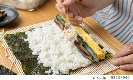 巻き寿司・海苔巻きの調理シーン