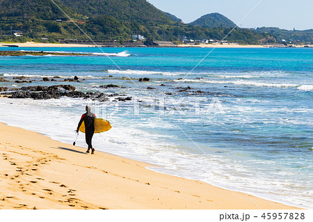 手広海岸のサーファー 鹿児島県大島郡龍郷町赤尾木