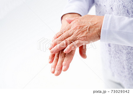 アルコール消毒をするシニア男性 ボディパーツ パーツカット