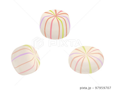 手毬麩(ストライプ三種)のリアルな水彩イラストセット