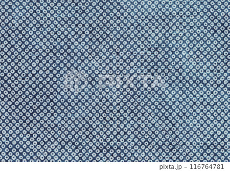 藍染生地に染めた日本の伝統紋様、豆絞りの絣