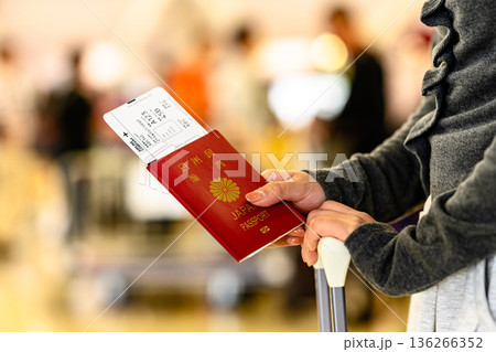 空港で搭乗券とパスポートを持つ女性 ■撮影協力:関西国際空港(KIX)
