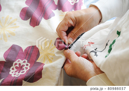 裁縫をする女性の手