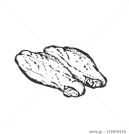生の、手羽中のアイコン(線画)のイラスト