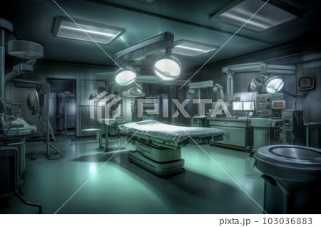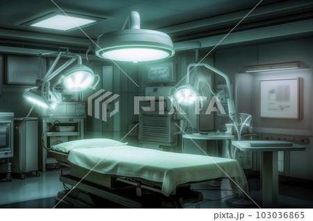 病院の薄暗い手術室:AI作品